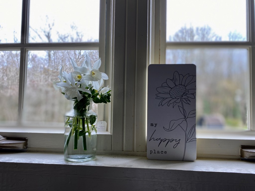In the morning there is oregano and paperwhites on the sill in a jar. My first appointment is a no call no show and I have room to write in my journal, read poems and write them too. I am blessed and kissed by this special day and give thanks for the window of time. The practical magic in this.